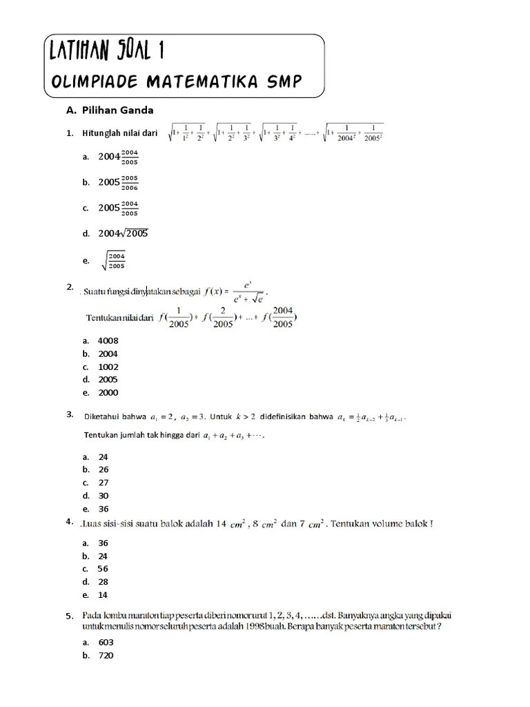 Soal Olimpiade Matematika Smp Kelas 8 / Soal Matematika Smp Olimpiade Sains Nasional Tahun Pdf Free Download / Pin on buku catatan matematika source:. Soal olimpiade matematika internasional dan solusinya. Soal hots matematika ke 1. Contoh soal matematika kelas 5 sd semester 2. Pilihlah salah satu jawaban yang paling tepat dari soal matematika kelas demikian informasi tentang kumpulan soal kelas 8 smp/mts khusus untuk . Soal dan pembahasan matematika kelas 7 8 smp.